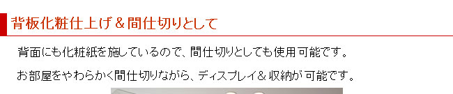 このような方におすすめしたいのが、こちらのページでご紹介しているすっきりデザインの飾り棚です。大きな特徴は、左右に棚板がないこと。くしをモチーフにした特徴的なデザインで、お部屋に置いても圧迫感が少なく、スペースが心配な方からもご好評いただいています。 |