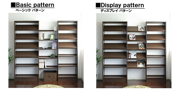 すべての棚板をフラットにして、ごく普通の棚として使うもよし、すべての棚板をディスプレイにして、コレクションを飾るもよし。もちろん、フラットとディスプレイの両方を採り入れたレイアウトにもできます。
